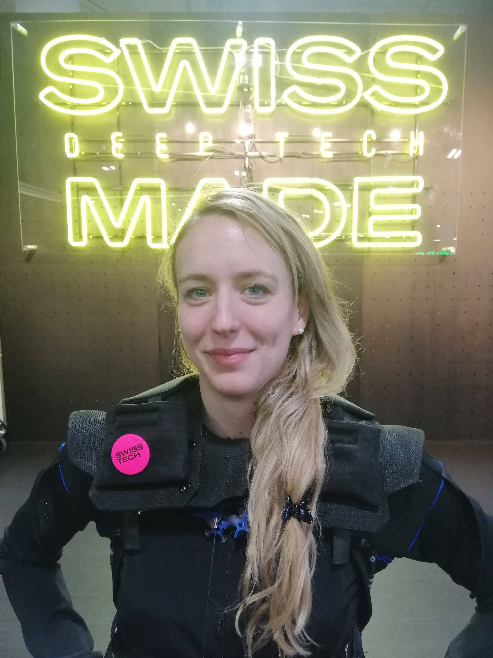 Presentation of the "FlyJacket" at the Swiss Pavillon with Presence Switzerland.