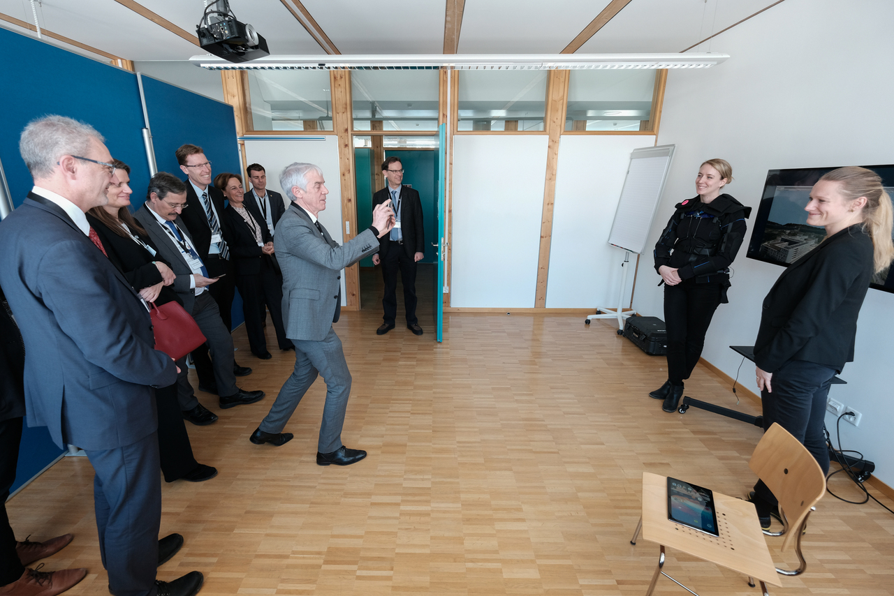 Presentation of the "FlyJacket" to showcase the technologies developed by the Swiss Universities to politiciens.